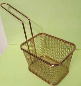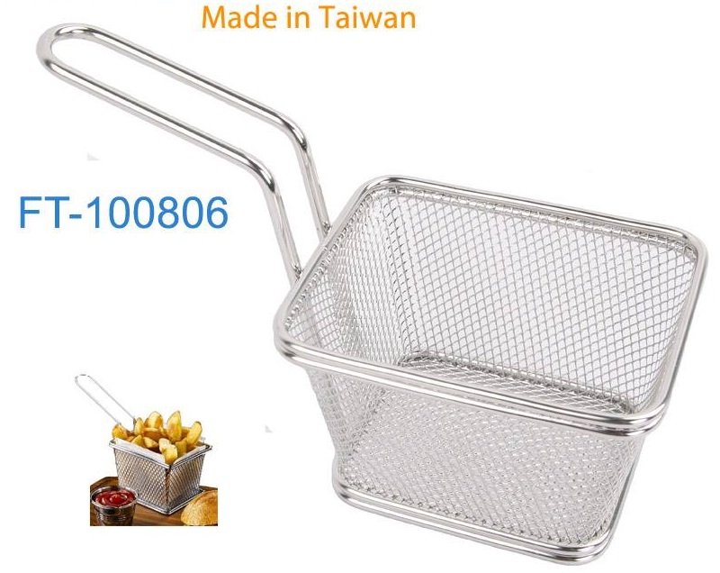 Square stainless steel wire basket for holding french fries, bread, chicken nuggets, hash browns, potato balls, corn chips, fried calamari rings, fried squid rings,